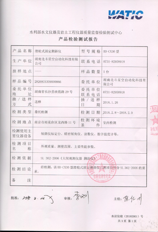 BD-CX30型滑輪式固定測斜儀檢測報告