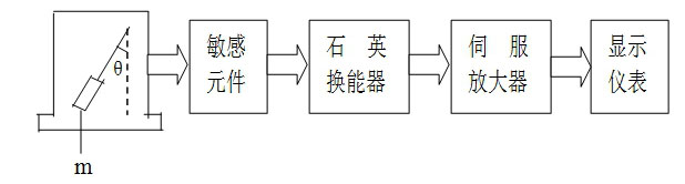 主要采用進口石英撓性伺服加速度計為敏感元件,它是一個力平衡式的伺服系統(tǒng),當傳感器相對于地球重心方向產生傾角θ時,由于重力作用,傳感器中敏感元件相對于鉛錘方向擺動一個角度,通過高靈敏的石英換能器將此角度轉換成信號,經過數(shù)據(jù)分析處理,可以直接用讀數(shù)儀顯示被測點的水平位移量。敏感元件是由接近零溫度系數(shù)的熔融石英玻璃制成,具有精度高,穩(wěn)定性好,重復性高,漂移小,熱穩(wěn)定性高等優(yōu)點。原來主要用于航天器上導航,近些年由于成本下降,用于測斜儀,按軍工生產標準生產,可靠性高。儀器原理框圖見(圖一)。